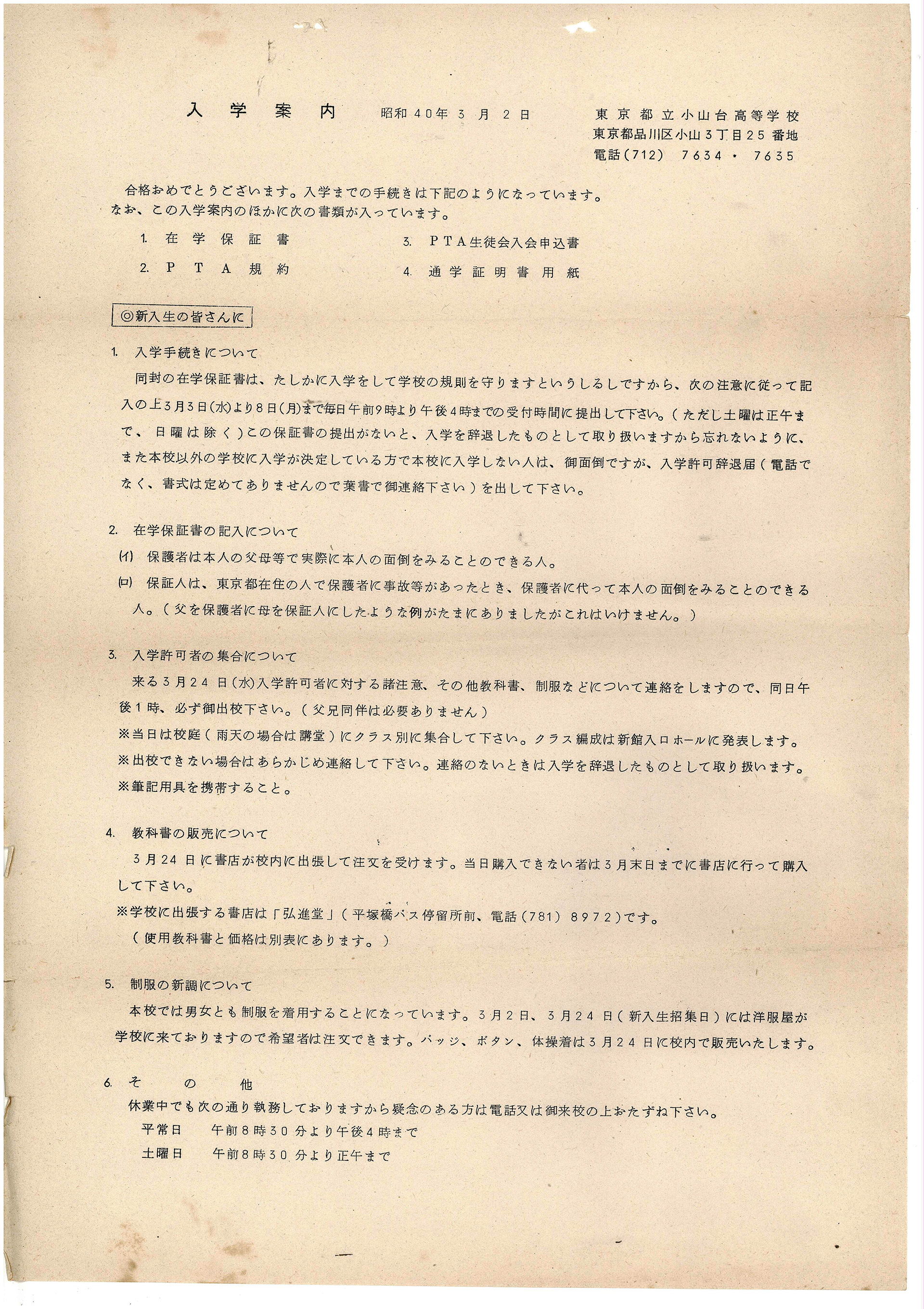 ファイル:昭和40年3月 入学案内01.jpg