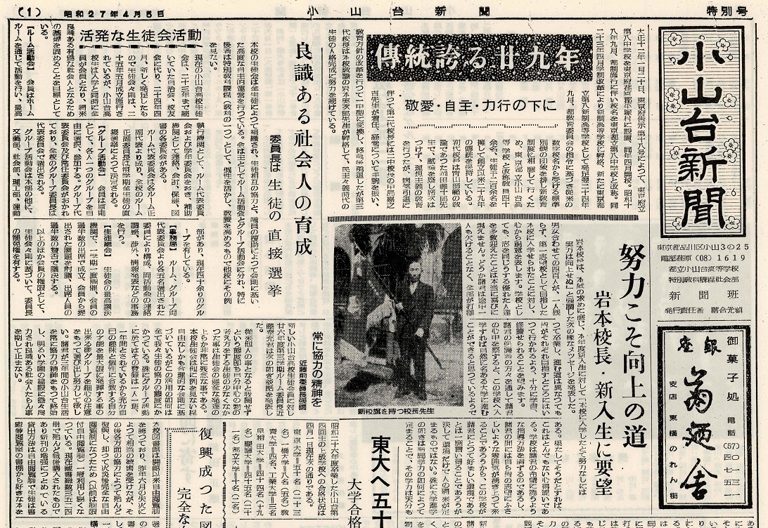 ファイル:1952 昭和27年4月5日 小山台新聞特別号.jpg
