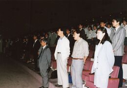 - 1972(昭和47)年には職員合唱が初参加し、「八中校歌」と「めだかの学校」の2曲を奥野一雄先生(数学科)の指揮によって歌い、大好評であった。しかし、職員合唱は間もなく中止せざるを得なくなった。練習時間がとれないことと、審査と演奏の掛け持ちが困難になったことなどが中止の理由である。